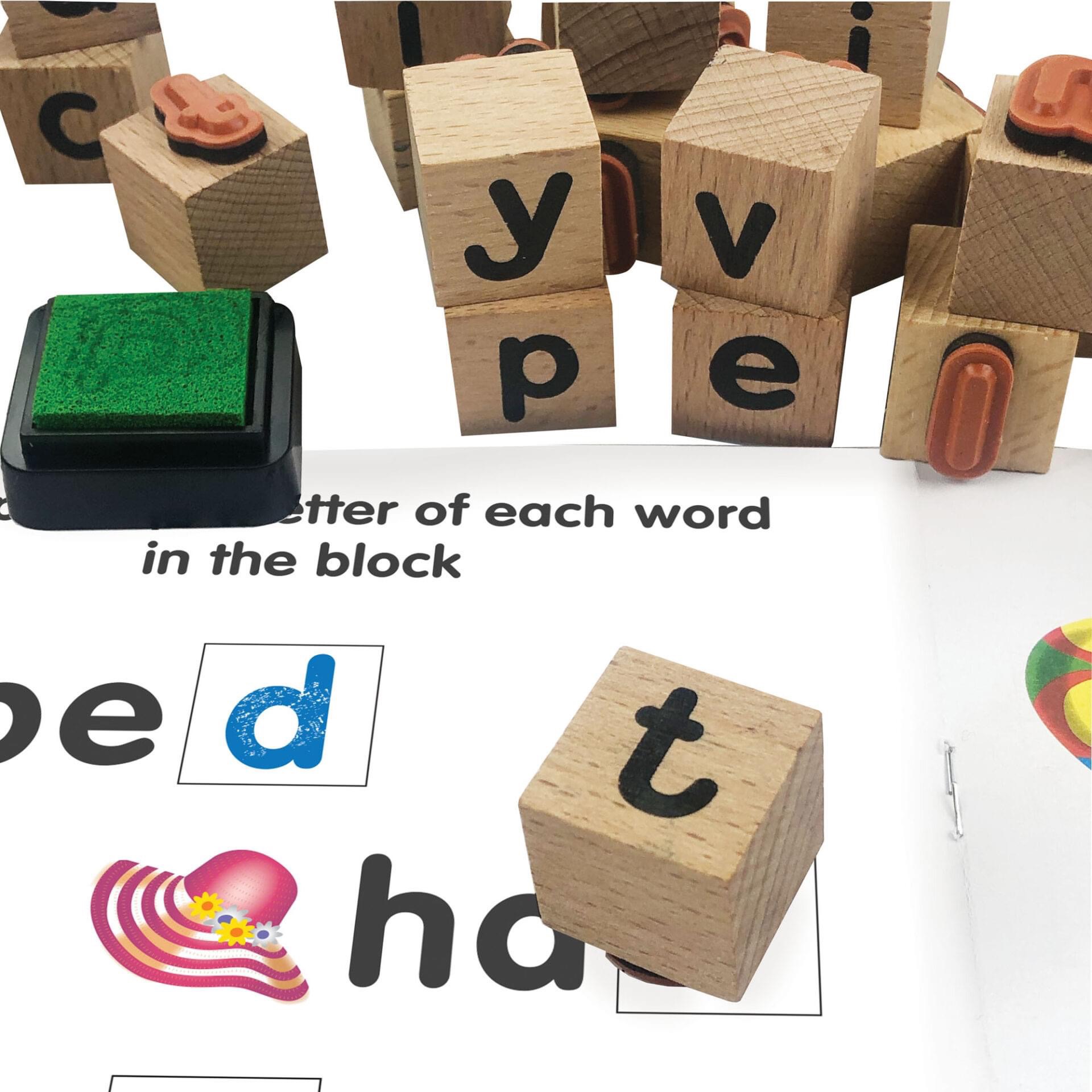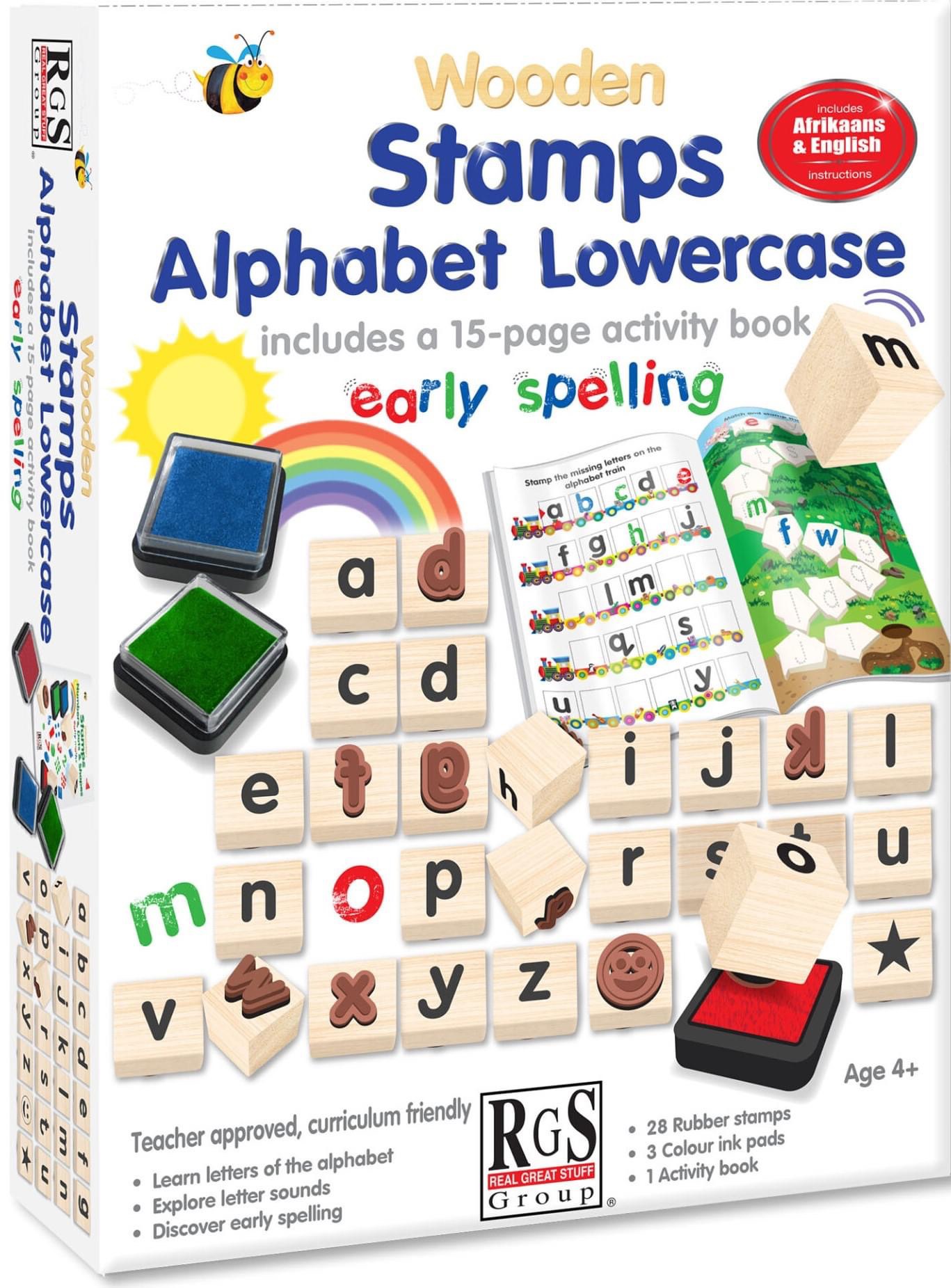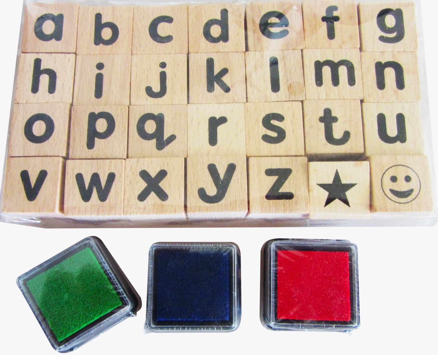 Our Alphabet Stamp set contains 28 sturdy wooden-handled rubber stamps, 3 colour ink pads and a 16-page activity book. Children love being creative and stamping activities are always popular – now they can learn the basics of the alphabet while playing!