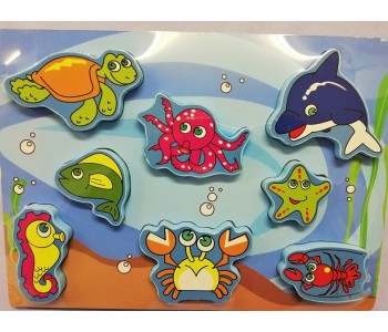 8 Piece wooden puzzle with bulky easy-to-grasp wooden pieces.
