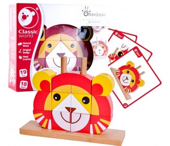 These blocks can be assembled in different ways to create imaginative animals, objects and patterns. The sets contain 19 blocks, a wooden base with 4 sticks and 5 double-sided instruction cards demonstrating creative ways in which to assemble the blocks.