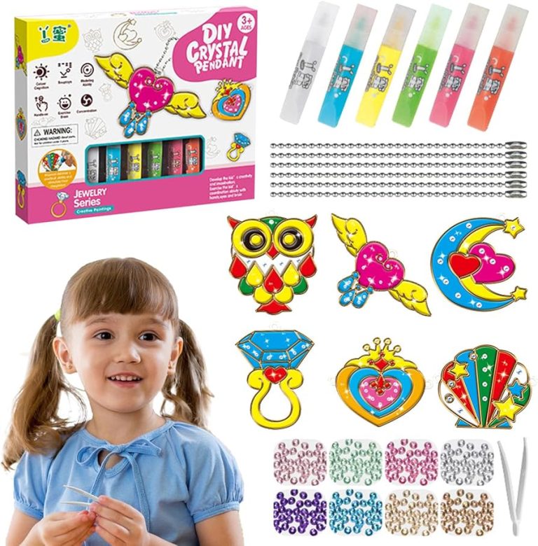 Create beautiful crystal pendants with this NEW kit (makes 6 designs). Either attach to a window to look like stained glass or attach the bead keychains and hang on their everyday backpack! Embellish each design with the pretty rhinestones to add an extra level of glitz!