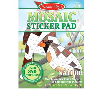 Create mosaics of cardinals, a bee, chipmunk, hummingbird, and more with the more than 850 stickers.