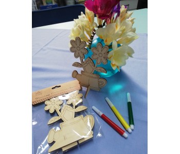 Wooden cut-out with three koki’s. Colour the design then use the little stand to display your work.
