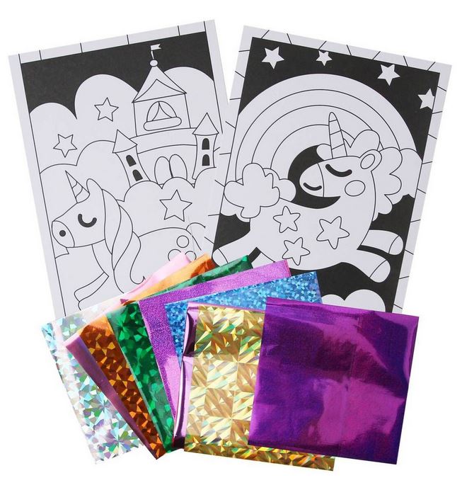One-of-a-kind foil art kit for any occasion or purpose; these can be used at a party, craft project, camp, family fun day, playdate, art class, school project and creativity activity in the classroom.
