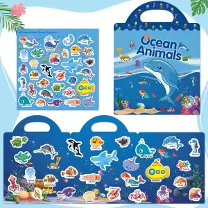The perfect travelling partner – our sticker playsets have a nifty carry handle. Assorted themes (potluck, but they’re all fun). Each playset opens into a giant trifold with loads of re-usable vinyl stickers that are easy to place and move around.