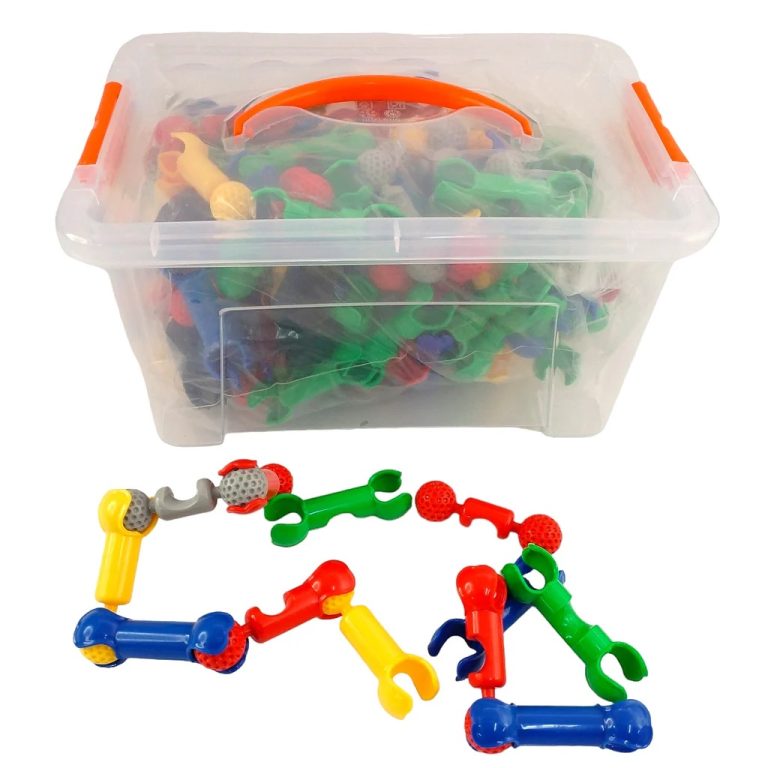 The set has 5 differently shaped pieces that snap together 20 ways – no special extra pieces are needed to build. Because it is so easy to use and so versatile, we think it is the best open-ended building system on the market!
