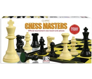The King measures 9cm high. Each chessboard is hinged for durability. Afrikaans and English instructions are included.