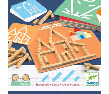 With Eduludo learning is a game! A collection of educational games that teach many skills. In this game the child has to find the right sticks tomatch the picture. ‘Sticks’ contains 24 models with varying degree of difficulty, 41 wooden stick pieces and solution cards.