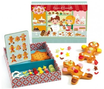 Djeco’s Oscar and Cannelle Gingerbread Set is a fabulous set of 3 gingerbread wooden cookies that can be decorated with the brightly coloured icing pegs.