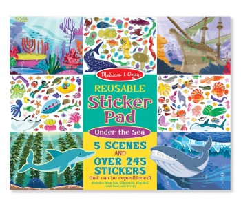 Fill the five reusable scenes with more than 245 cling-style stickers, and create your own underwater adventures! To set the scene and spur the imagination, five glossy, full-colour backgrounds (deep sea, shipwreck, kelp bed, coral reef, arctic) feature lots of space to play creatively. They pull out cleanly too – so this cool set is easy to share. The colourful, kid-friendly stickers (for ages three and older), are organized by scene, stick easily, pull up cleanly, and can be used again and again to keep bringing ocean adventures to life.