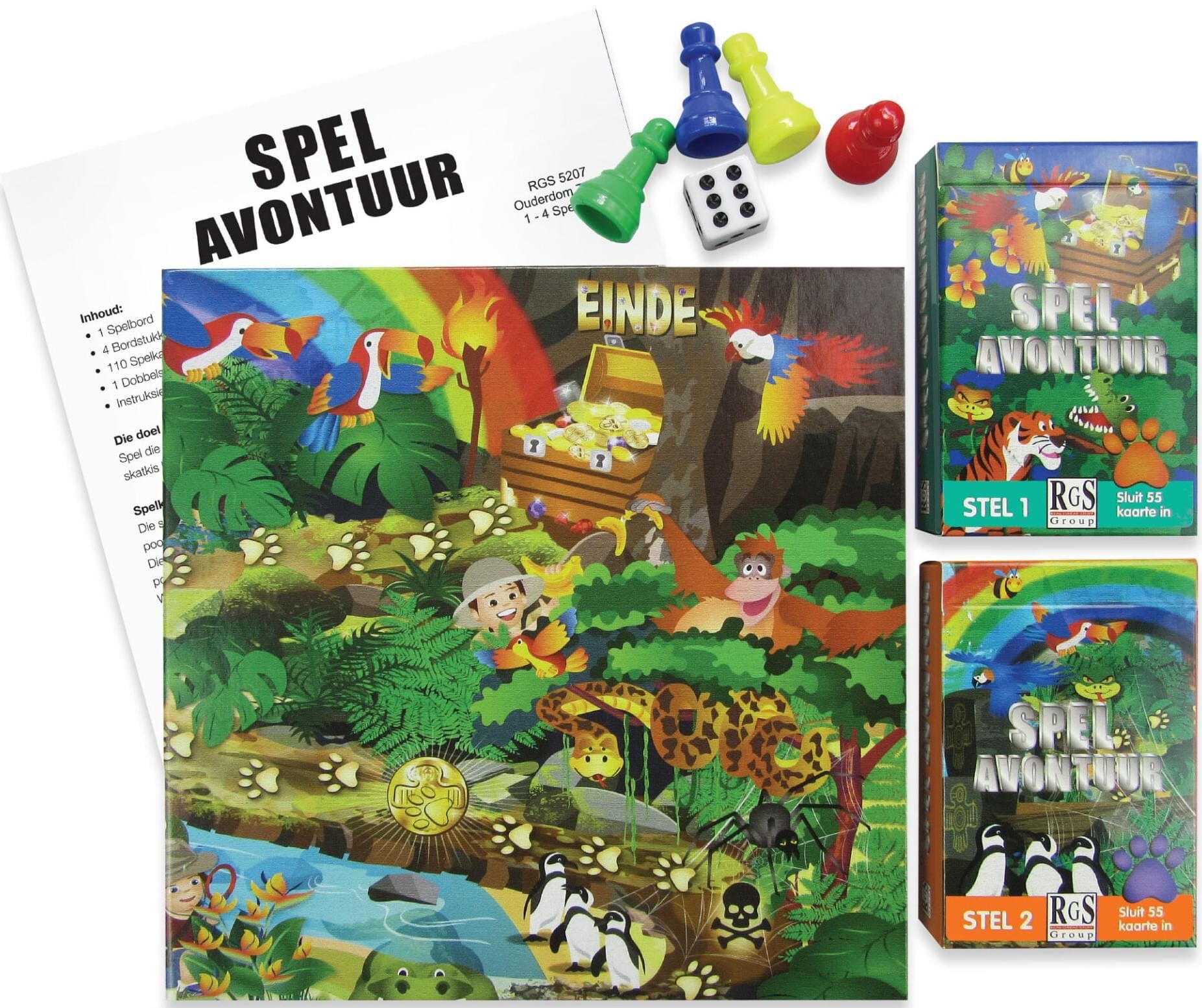 Spel Avontuur is ‘n prettige manier om jou spelling te oefen of nuwe woorde te leer. Rol die dobbelsteen, spel jou woord korrek en beweeg langs die pootgedrukte pad. Kan jy die eerste een wees wat die skat bereik en wen?