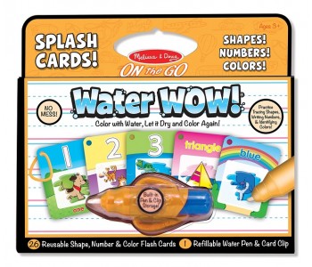 Discover flashcards and a reusable coloring activity in one! This set of 26 learn-and-play cards comes with a chunky, easy-to-grasp water pen that’s perfect for preschoolers and beginning writers. Each card features a number, shape, or color, together with a water-activated illustration to bring it to life. Kids love to see the blue whale, triangular sailboat, and trio of turtles appear as they color! The pictures and letters turn white again as each card dries, so they can be reused endlessly as children improve color recognition, counting skills, shape identification, and hand-eye coordination. Store the whole set in the Set of sturdy flashcards with magic-reveal pictures and colors sturdy box, or clip the cards together with the included clasp to customize an on-the-go learning pack!