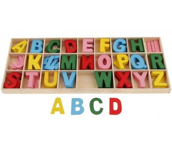 WOODEN LETTER SET: Contains a total of 104 pieces, with 4 pieces of each letter in the alphabet. Comes with a storage tray for easy access.