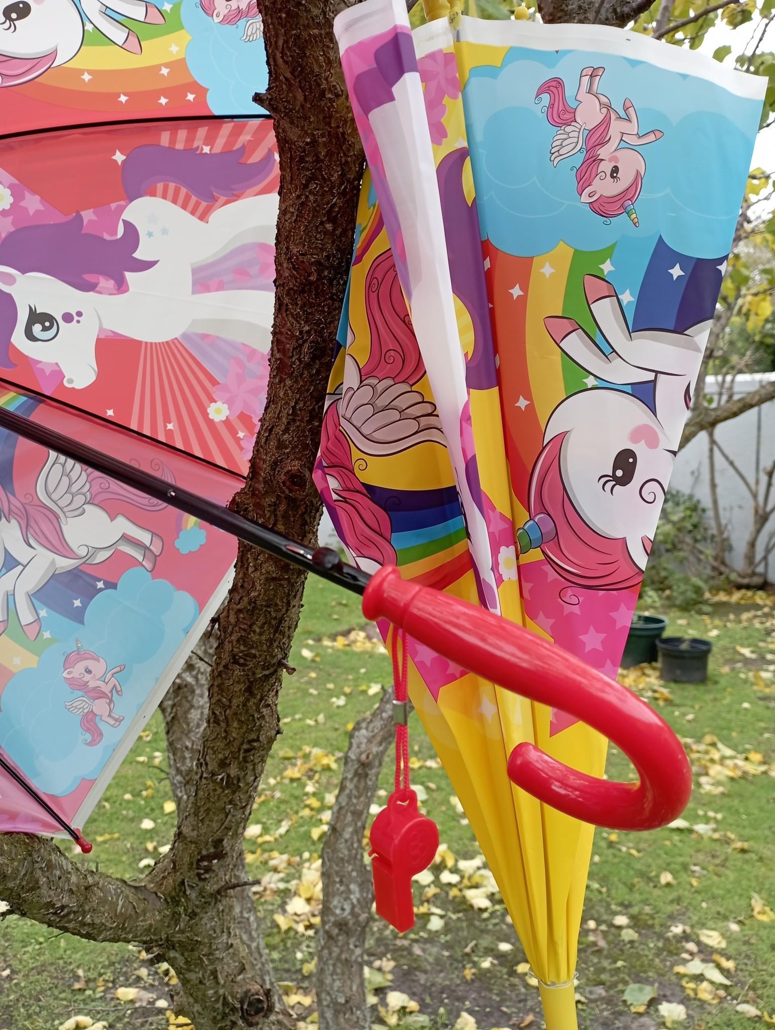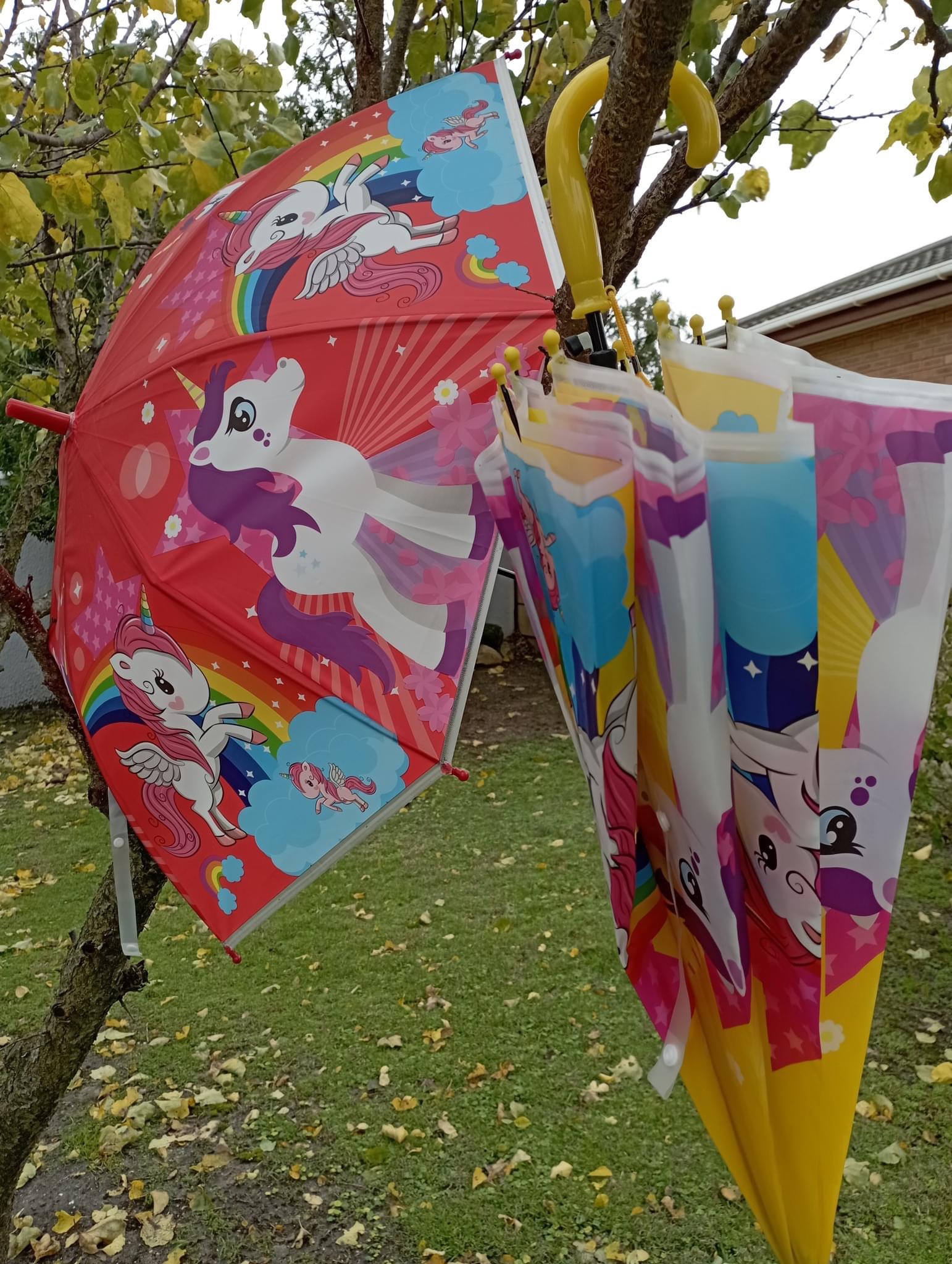 Raindrops keep falling on my head – actually NOT when you have one of the umbrellas that have JUST been unpacked in our showroom. Unicorn themed and suitably sized for your children with beautiful patterns and bright colours.